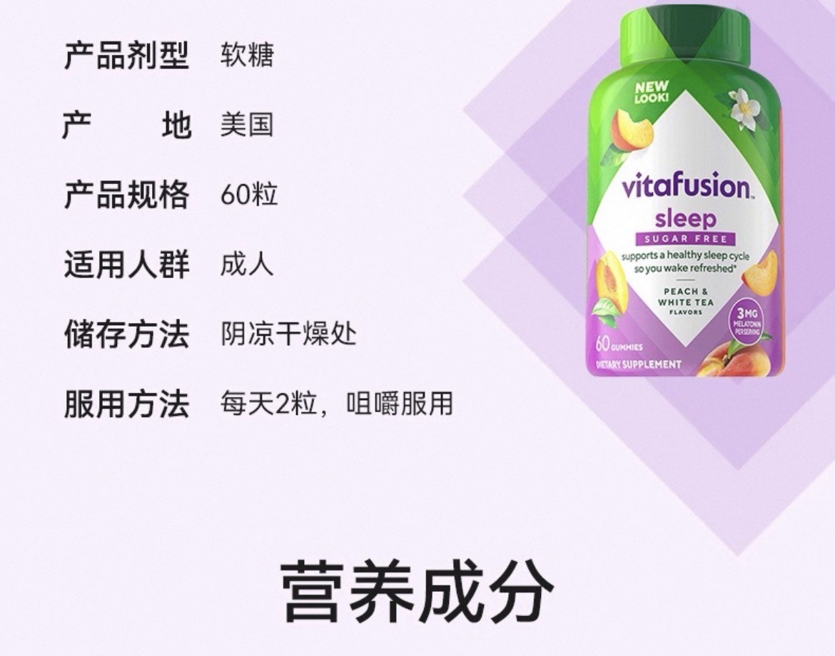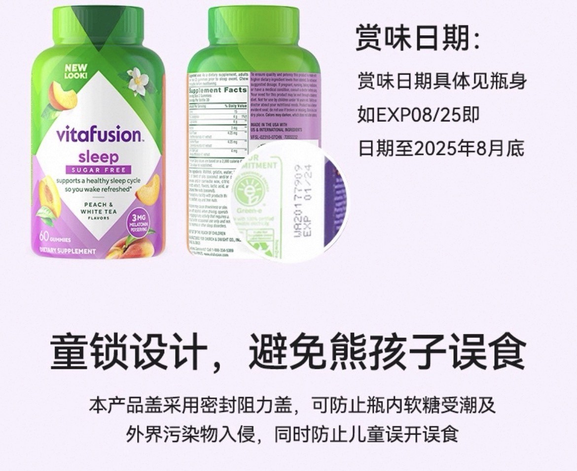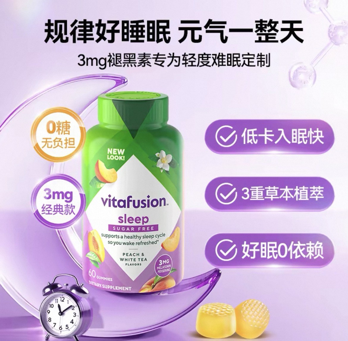美国vitafusionSleepWell褪黑素睡眠软糖60粒
