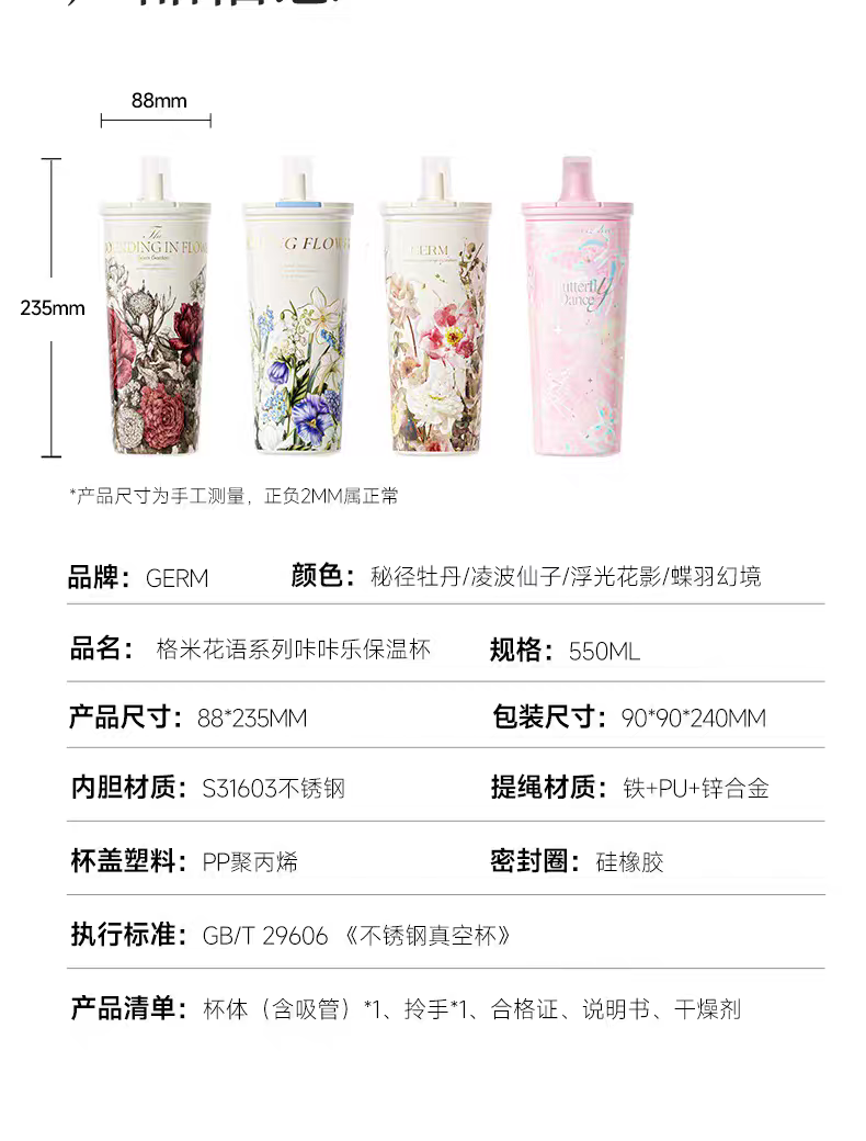 格米赛本联名悦享保温杯820ml 浮光花影白