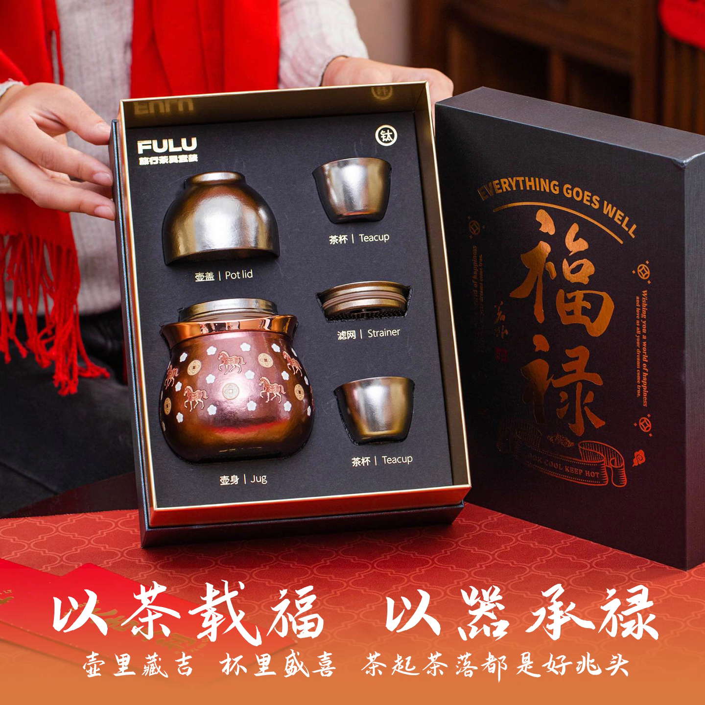 福禄纯钛旅行茶具套装160ml(炫彩粉-马上有钱)