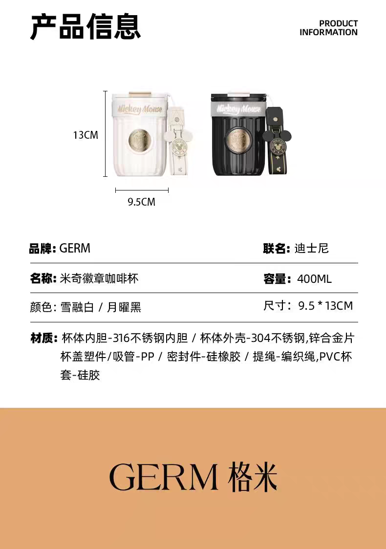 米奇系列徽章咖啡杯 400ml 耀夜黑