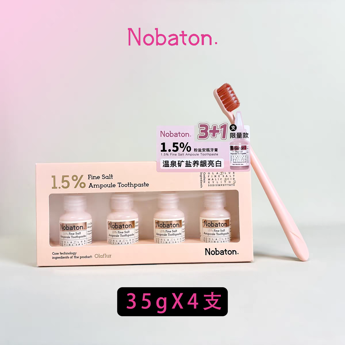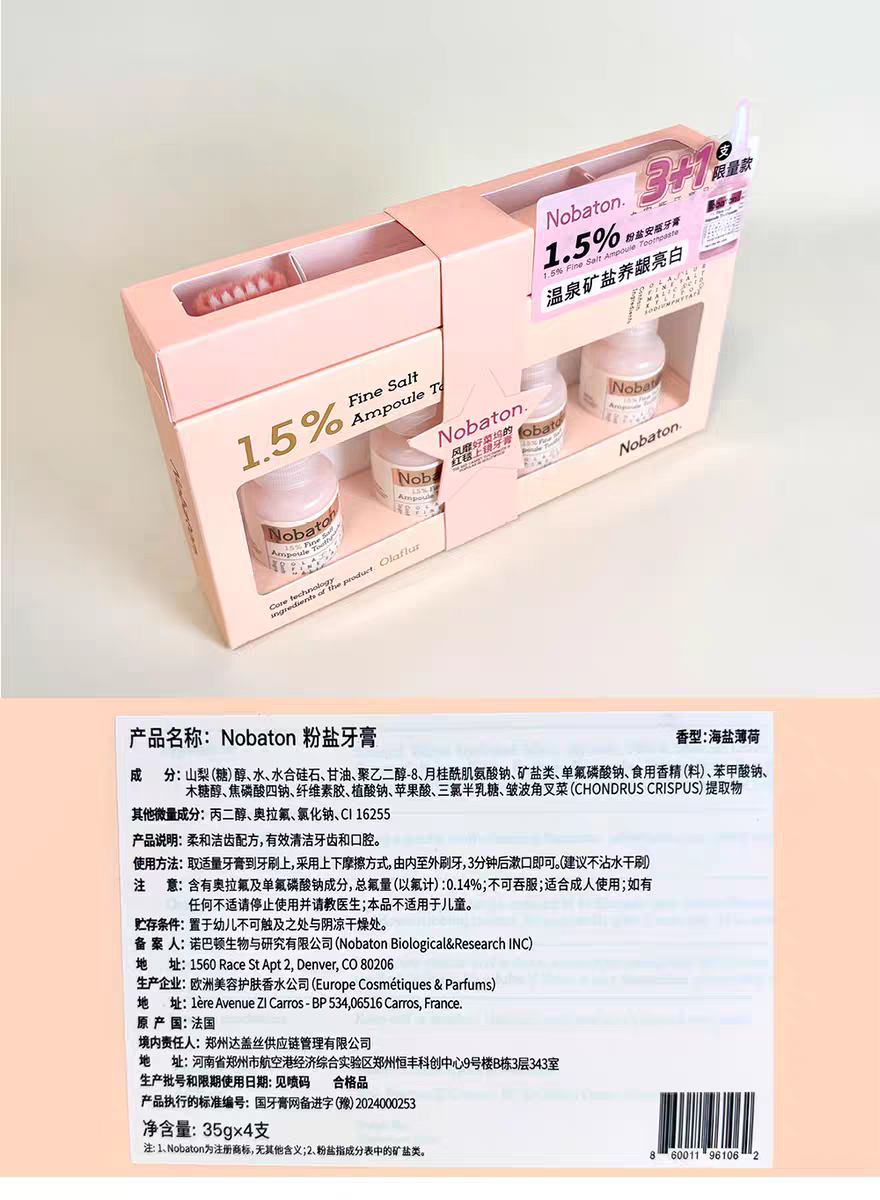 Nabaton粉盐牙膏35g*4+牙刷套装 (海盐薄荷)