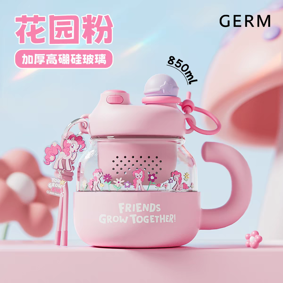 格米小马宝莉云朵大肚花茶杯850ml 花园紫