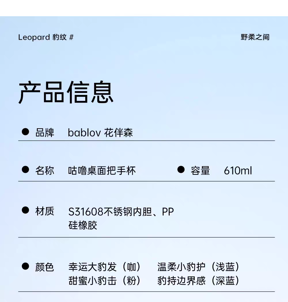 Bablow咕嘟桌面把手杯甜蜜小豹击610ml